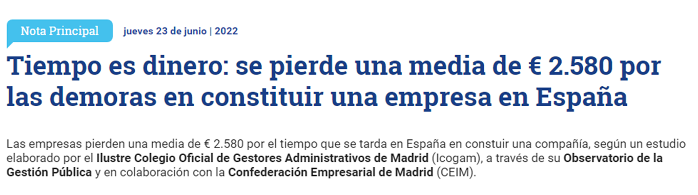El tiempo estimado para la constitución de una Sociedad en España son 25 días. Con nosotros puedes tenerla lista entre 6-10 días si recibimos la información que necesitamos en plazo.
